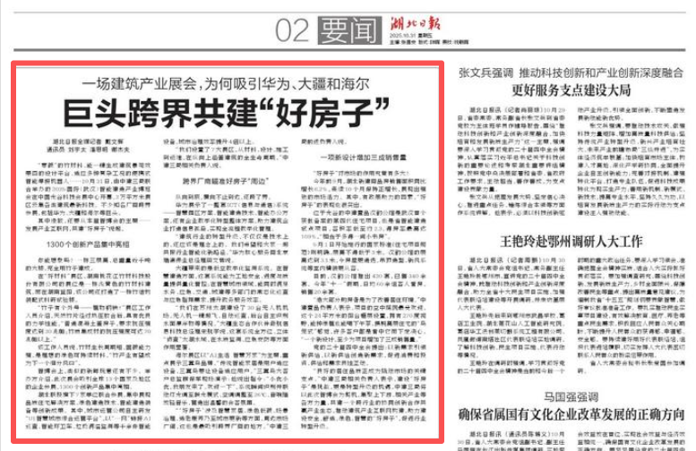 湖北日報:一場建筑產業(yè)展會,為何吸引華為、大疆和海爾巨頭跨界共建“好房子”